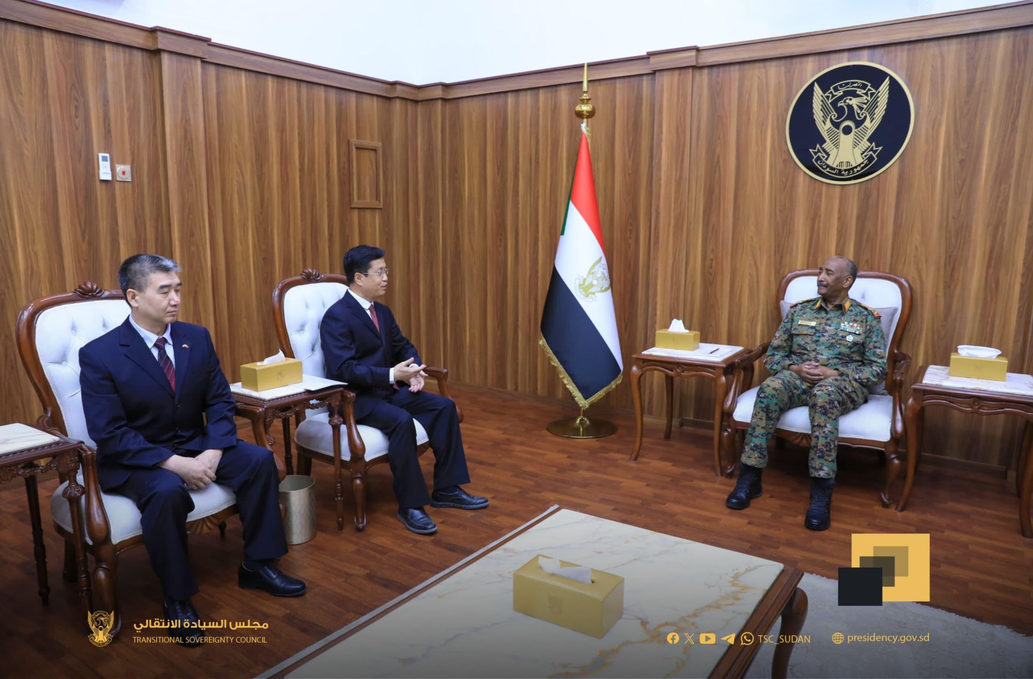 التقى السيد رئيس مجلس السيادة الانتقالي القائد العام للقوات المسلحة الفريق أول الركن عبدالفتاح البرهان اليوم سفير الصين لدى السودان جانغ شيان هوا.