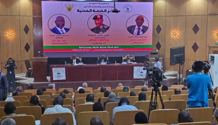 الجدير بالذكر ان مؤتمر الخدمة المدنية انطلقت اعماله يوم امس تحت شعار (خدمة مدنية فاعلة ومستدامة) بمبادرة من وزارة العمل والإصلاح الإداري، برعاية الفريق اول ركن عبدالفتاح البرهان رئيس مجلس السيادة، وتحت اشراف الفريق اول مالك عقار نائب رئيس مجلس السيادة الانتقالي، ويرأس المؤتمر الأستاذ احمد على عبدالرحمن وزير وزارة العمل والإصلاح الإداري حيث ناقش المؤتمر في يومه الأول سته أوراق، وخلال اليوم يناقش المؤتمر ايضاً عدد سته أوراق أخرى تنظر في كيفية تطوير الخدمة المدنية