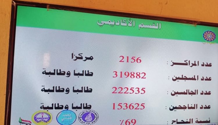 المجموع الكلي 222535 عدد الناجحون 153625 نسبة النجاح 69%