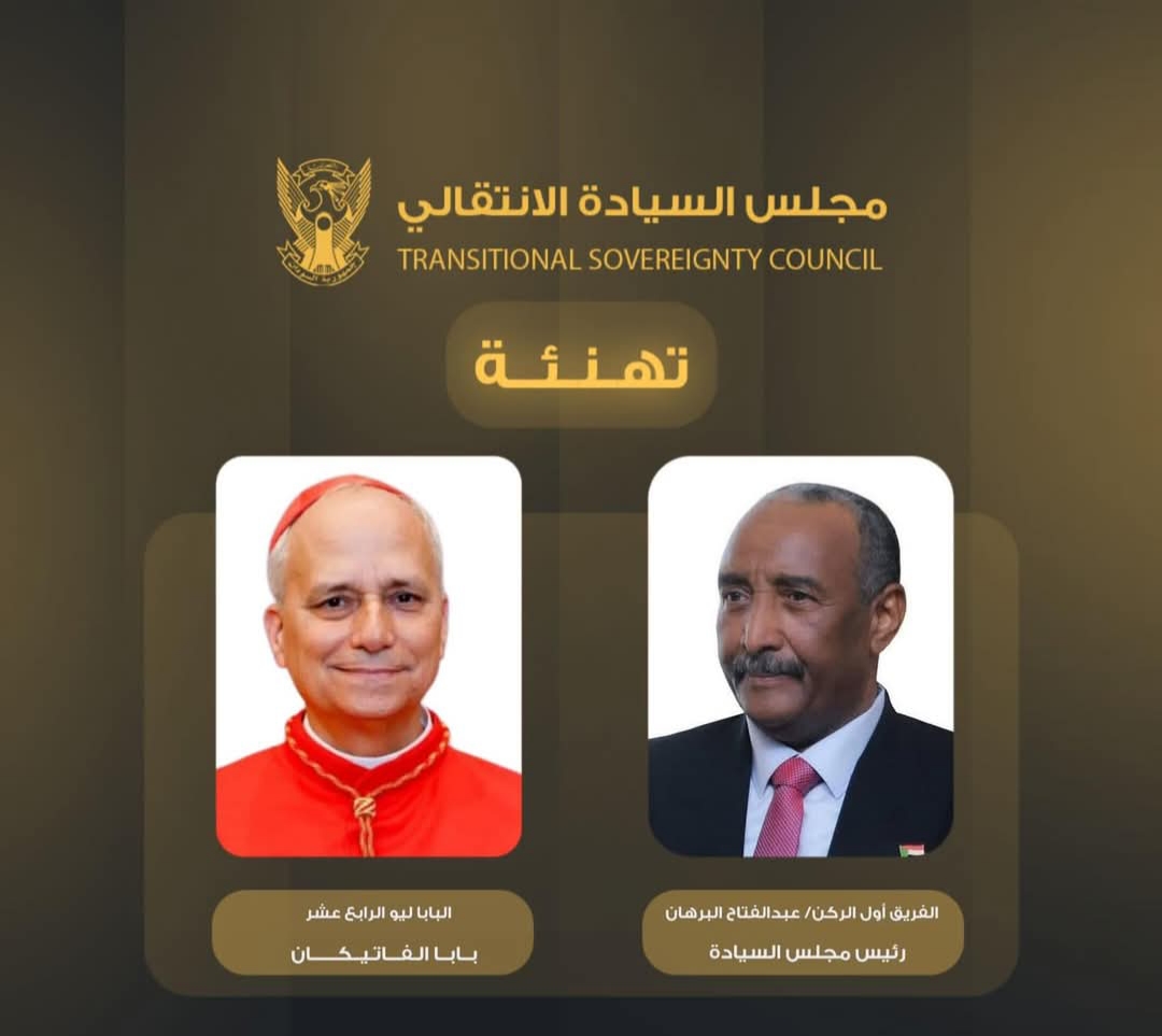 بعث السيد رئيس مجلس السيادة الانتقالي القائد العام العام للقوات المسلحة الفريق أول الركن عبدالفتاح البرهان، برقية تهنئة إلى قداسة البابا ليو الرابع عشر، بمناسبة انتخابه بابا للفاتيكان.