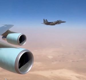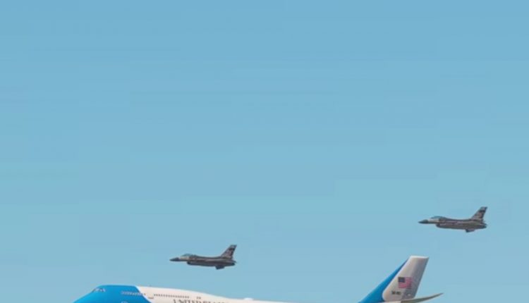طائرات F15 السعودية تحلق في سماء الرياض لتأمين طائرة الرئيس الأمريكي – وصل الرياض بسلام