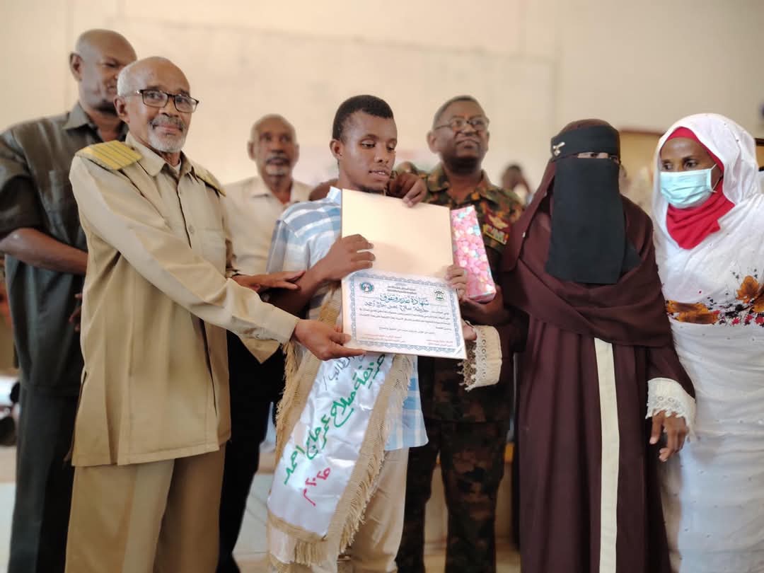 مشيداً بالدعم المتصل من حكومة الولاية والقيادات العسكرية والمنظمات الطوعية لإنجاح موسم الإمتحانات كما خصّ الطالب حذيفة بالتحية لتفوقه رغم ظروف الإعاقة .