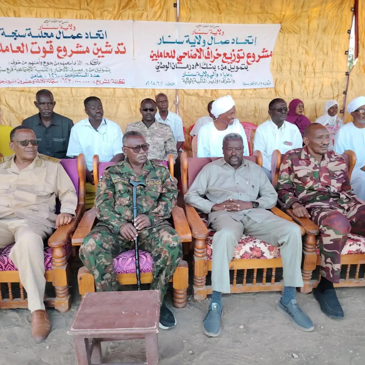 دشن والي سنار اللواء ركن م الزبير حسن السيد مشروع توزيع خراف الأضاحي ومشروع قوت العاملين للعاملين بولاية سنار.