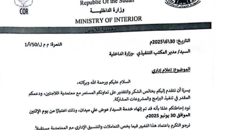 أصدر معتمد اللاجئين المكلف، محمد يس التهامي، قرارًا بفصل عدد من الموظفين عقب عملية تفتيش إداري شاملة أجريت على مؤهلات العاملين بالمفوضية، وذلك في أعقاب تحقيقات كشفت عن وجود فساد في إدارة التوظيف والنقل داخل الهيئة.