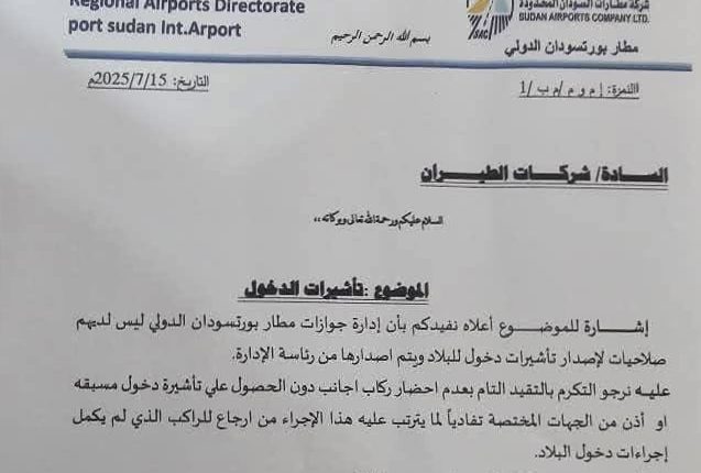اصدار مطار بورتسودان إجراءات صارمة لدخول البلاد لكل الأجانب