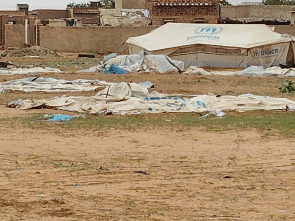 وقد خلّفت العاصفة الترابية التي ضربت المحلية دمارًا وخرابًا للخيام، إذ اقتلعتها من أماكنها وتسربت المياه إلى داخل ما تبقّى من خيام قاومت العاصفة.