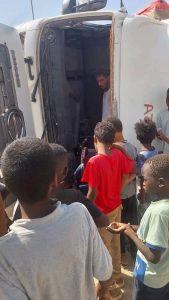 اطفال الحي امام العربة الشاحنة بعد الحادث