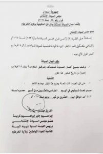 وجاء القرار استناداً على الفقرة (2) (1) من قرار مجلس السيادة بالرقم (153) لسنة 2025م والقاضي بتشكيل اللجنة العليا لتهيئة البيئة المناسبة لعودة المواطنين لولاية الخرطوم، ووجه القرار كل الجهات ذات الصلة وضع هذا القرار موضع التنفيذ.