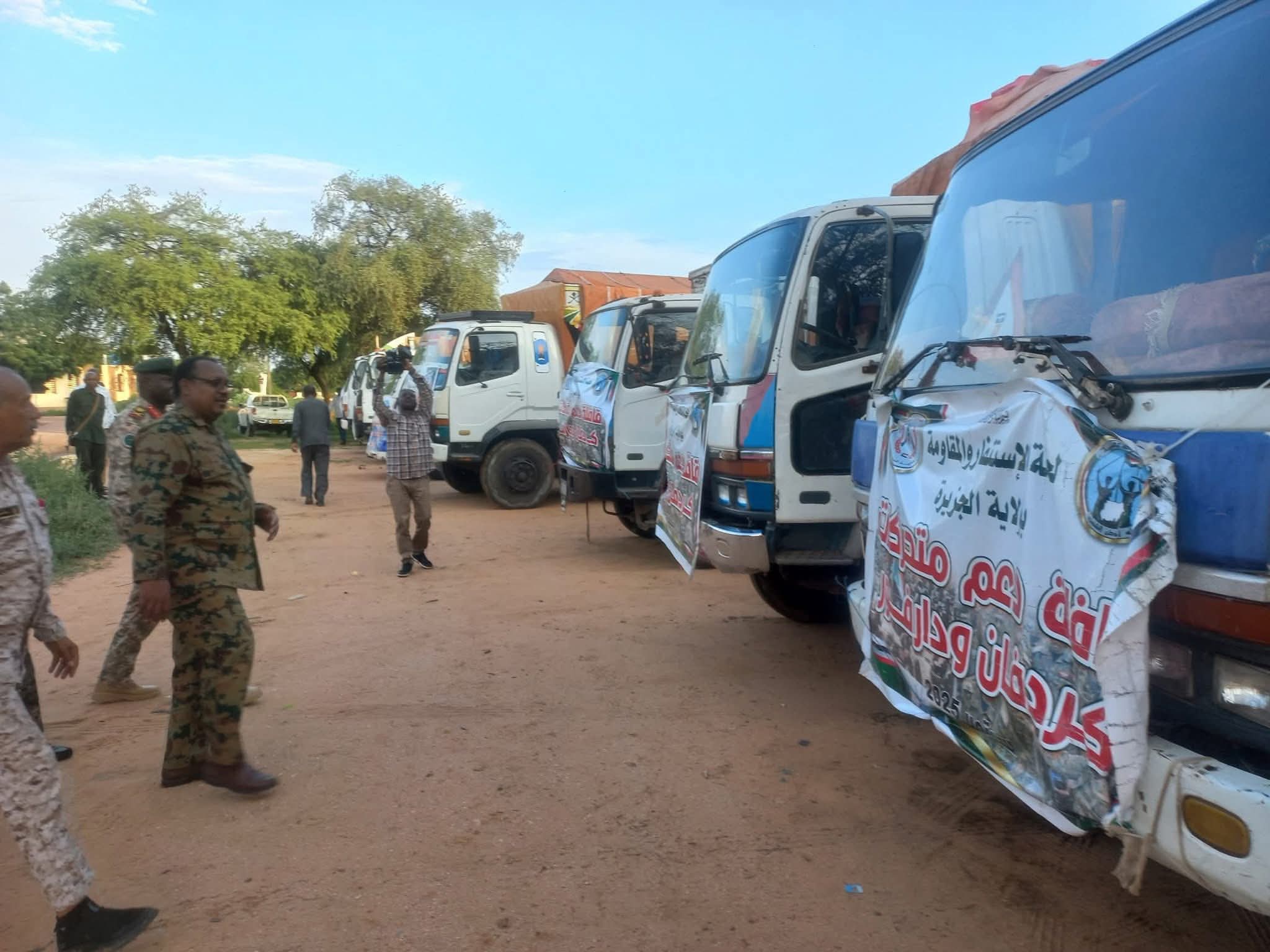كما تحدث رئيس المقاومة الشعبية بولاية شمال كردفان، اللواء الركن معاش جمال الدين طه، مؤكداً أن القافلة تمثل رسالة واضحة بأن الشعب السوداني، بمكوناته، موحد في الدفاع عن الأرض والعرض وثابت على الحق. وقال إن هذه المبادرات الشعبية تعكس الحس الوطني العميق لأهل الجزيرة، وتعزز من صمود الجبهة الداخلية في مواجهة التحديات.