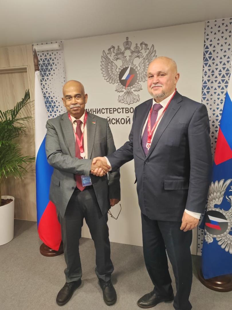 قدم المهندس معتصم إبراهيم في مستهل اللقاء شكره للحكومة الروسية على الدعوة والدعم الروسي المتواصل للسودان خلال فترة الحرب، مؤكدا عمق ومتانة العلاقات بين البلدين. اشاد الوزير الروسي بمستوى العلاقات المتطورة بين البلدين مبديا استعدادهم للمضي قدما في تعزيزها ودفعها إلى آفاق ارحب.