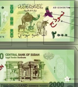 بصورة مفاجئة، أعلن بنك السودان المركزي، إصدار ورقتين نقديتين من فئتي 500 و2000 جنيه.