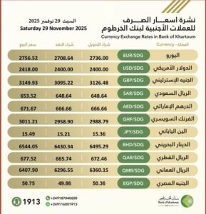 جدول يوضح أسعار العملات في بنك الخرطوم اليوم