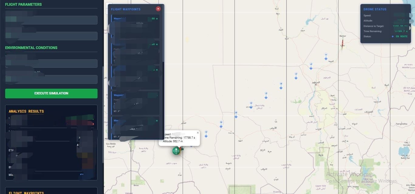 ونوهت إلى أن وزن الرأس الحربي 25 كيلوجرامًا كمتوسط حمولة بنطاق تأثير متوقع عند الإصابة في حدود 10 أمتار، وحددت البرمجية المسار الأمثل والمتوقع وكامل خط الطيران Fly Path للمسيرات الهجومية مع الانحرافات في المسار.