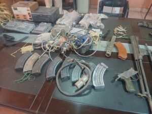 في عملية نوعية محكمة و إنجاز أمني جديد يعكس يقظة وكفاءة الأجهزة الشرطية تمكن فريق من شرطة ولاية القضارف من تفكيك عصابة متخصصة في نهب المشروعات الزراعية وذلك عبر عملية مشتركة تم تنفيذها بواسطة القوة المشتركة من المباحث الجنائية وشرطة محلية القلابات الغربية وشرطة محلية ريفي وسط أسفرت عن ضبط عدد3 بندقية كلاشنكوف وعدد 2 بندقية جيم 3 مفككة وعدد6 خزن كلاش فارغة و كمية من الاسبيرات وعدد (6) جهاز كمبيوتر سيارات مختلفة و كاميرا مراقبة وجهاز كمبرسون هواء وعدد(2) منظم كهرباء وعدد(5) مراوح سقف وشنطة مفاتيح وعاكس مروري يستخدم لايقاف السيارات ليلا للنهب وجهاز مقاييس يخص الطرق والجسور وعدد (9) هواتف مختلفة وموتورات وبابور زراعي نيو هولاند موديل 2025الذي شاركت قوات الدرع في العثور عليه مع القوة المشتركة كما تمكن الفريق من العثور علي عربة بوكس موديل2017 كان تستخدم في عمليات النهب تقدر قيمة المضبوطات بأكثر من ترليون جنيه سوداني