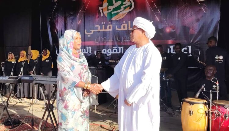 من جهتها أعربت الفنانة إنصاف فتحي عن اعتزازها بالتغني للخرطوم ومن المسرح القومي كمساهمة منها في دعوة الجميع للقيام. بواجبهم تجاه هذ الصرح الوطني الذي قدمت من خلال خشبته أعمالاً خالدة في وجدان المواطن السوداني.