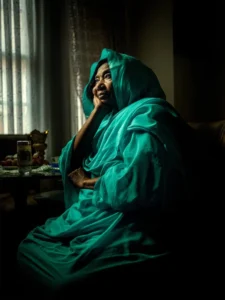 والصورة التي تحمل عنوان «ليلى» التقطها المصور البريطاني آدم دوكر داخل منزل مدني في لندن عقب عودتها من زيارة للسودان، وذلك أثناء توقف قصير خلال تصوير مشروع وثائقي لصالح مؤسسة خيرية.