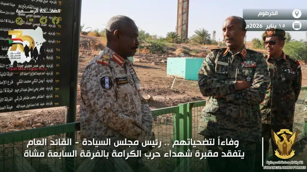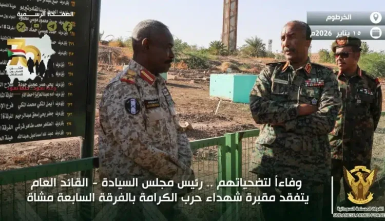 في مشهدٍ يجسد معاني الوفاء والعرفان، زار رئيس مجلس السيادة الانتقالي والقائد العام للقوات المسلحة، الفريق أول ركن عبد الفتاح البرهان، اليوم الخميس، مقابر شهداء معركة الكرامة، حيث وقف سيادته مترحماً على أرواح الأبطال الذين بذلوا الدماء والأرواح رخيصة فداءً للوطن وصوناً لترابه من دنس مليشيا الدعم السريع، وأكد البرهان أن هؤلاء الأبطال الذين انتقلوا إلى عالم الأجداث مع الخالدين، ستظل قبورهم شواهد حية للأجيال القادمة على أسمى قيم البذل والتضحية، مشدداً على أن هذا الصمود هو “ديدن” القوات المسلحة وعقيدتها الراسخة التي لا تلين.