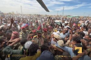 ورحب المواطنون بزيارة البرهان المفاجئة حيث ظهر رئيس مجلس السيادة في سيارة بوكس، وحيا المواطنين، وسط هتافات “جيش واحد شعب واحد.