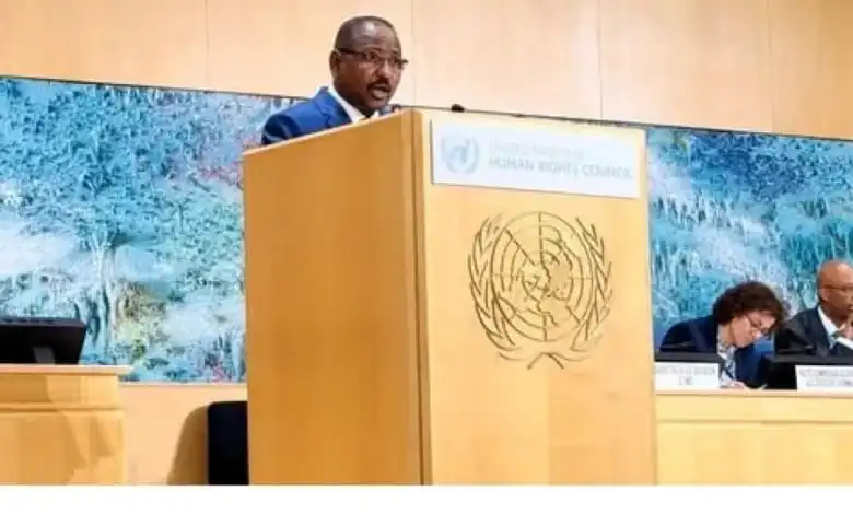 وأوضح الوزير، خلال جلسة الحوار التفاعلي في مجلس حقوق الإنسان بجنيف، التقدم في التحقيق في انتهاكات القانون الوطني والدولي الإنساني، وإعداد إحصائيات مفصلة حول الدعاوى الجنائية والضحايا في الولايات المتأثرة بالنزاع.