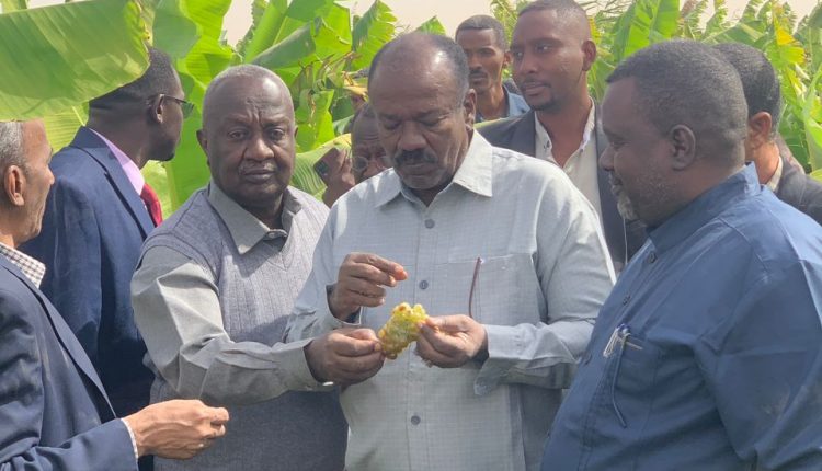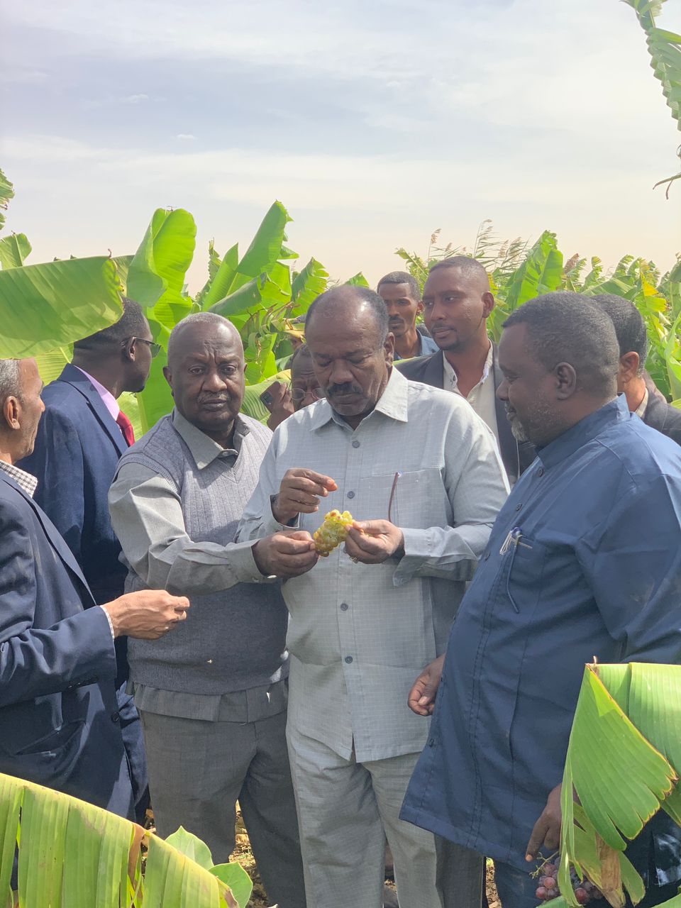 وتعرف الوزير على إنتاج المشروع المتمثل في فواكه المانجو والعنب والموز بالإضافة إلى القمح والقطن مبدئيا ارتياحه للانتاجيه العالية مؤكدا حرص الوزارة على تشجيع الإستثمارات الوطنية مشيدا بالحاج معاوية البرير وحرصه على التوسع في المجال الزراعي ونقل التقانه الزراعية بما يفيد المجتمعات المحلية ودوره الكبير في المسؤولية المجتمعية بالمنطقة والادوار الوطنية التي يضطلع بها .