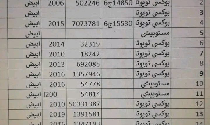 متابعة – منصة السودان -نشر ناشطون عن ضبط مئات السيارات المسروقة في مدينة أمدرمان بولاية الخرطوم ، وتنشر منصة السودان أسماء و أرقام لوحات العربات التي تم ضبطها في امدرمان ، على كل من فقد سيارته في حرب الخرطوم مراجعة هذه الكشوفات المرفقة