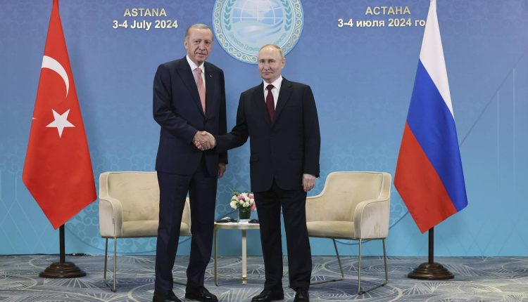 وكالات – منصة السودان – ذكر التلفزيون الرسمي الروسي أن الرئيس فلاديمير بوتين اجتمع مع نظيره التركي رجب طيب إردوغان على هامش قمة منظمة شنغهاي للتعاون في آستانة عاصمة كازاخستان.