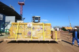 ووفق بيان حصلت عليه منصة الطاقة المتخصصة (مقرّها واشنطن)، صُدِّرَت الشحنة الأولى من مجمع رؤوس الآبار، التي تعدّ عنصرًا أساسًا في عملية التحكم في الإنتاج من حقول النفط والغاز، إلى حقل نفط وغاز تديره شركة إيني الإيطالية.