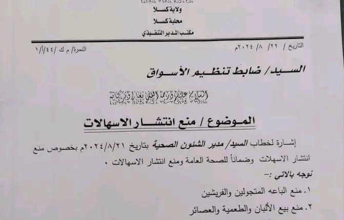 ويأتي القرار، في إطار جهود المحلية الصحية القاضية بمنع انتشار الكوليرا وضمانا للصحة العامة.