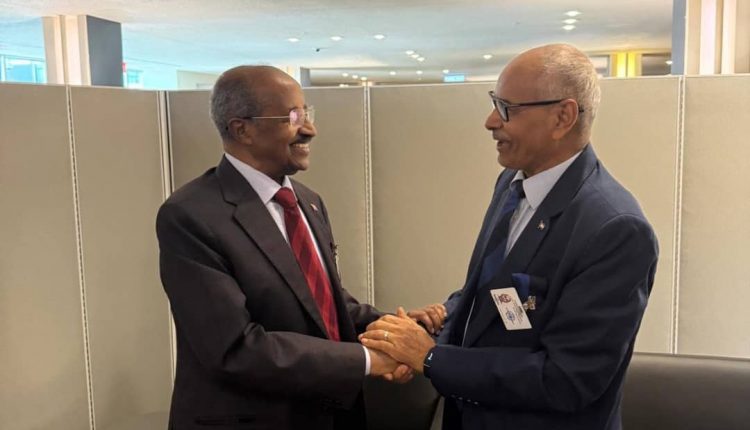 خلال مشاركته في أعمال الجمعية العامة للأمم المتحدة في دورتها ٧٩ التقي معالي السيد حسين عوض علي وزير الخارجية صباح اليوم ٢٣ سبتمبر ٢٠٢٤م بمعالي السيد عثمان صالح وزير خارجية اريتريا
