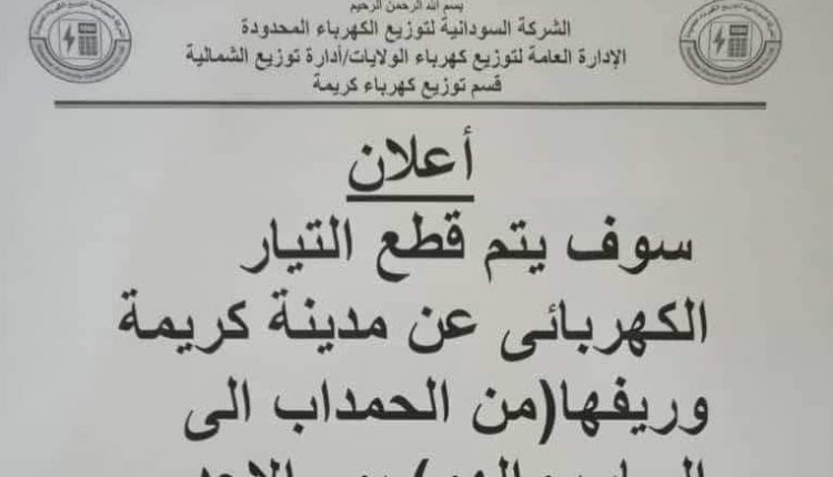 الشركة السودانية لتوزيع الكهرباء تصدر إعلان مهم أخبار الولايات بواسطة منصة السودان في نوفمبر 23, 2024 937 0 الشركة السودانية لتوزيع الكهرباء تعلن عن قطع التيار الكهربائي عن مدينة كريمة وريفها (من الحمداب إلى الساب والهو) صبيحة يوم غدٍ الاحد لأغراض الصيانة بمحطة مروي التحويلية . اضغط هنا للانضمام الى مجموعاتنا في واتساب الشركة السودانية السودانيةقطع التيار الكهربائيمدينة كريمةمروي التحويلة