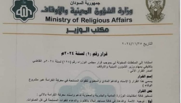 قرار من وزير الشؤون الدينية عمر بخيت ينص على :