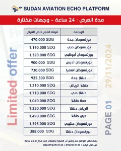 أصدرت منصة صدى الطيران تحديث لأسعار تذاكر الطيران وحجوزات الطيران لليوم الجمعة لمختلف الوجهات الدولية والمحلية.