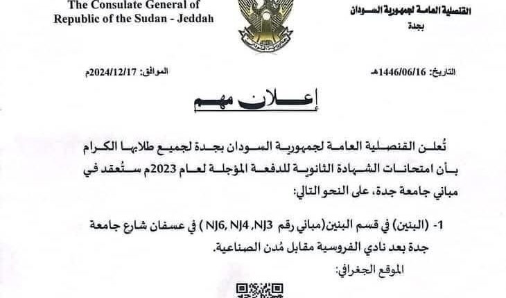 القنصلية السودانية بجدة تحدد مباني إمتحانات الشهادة