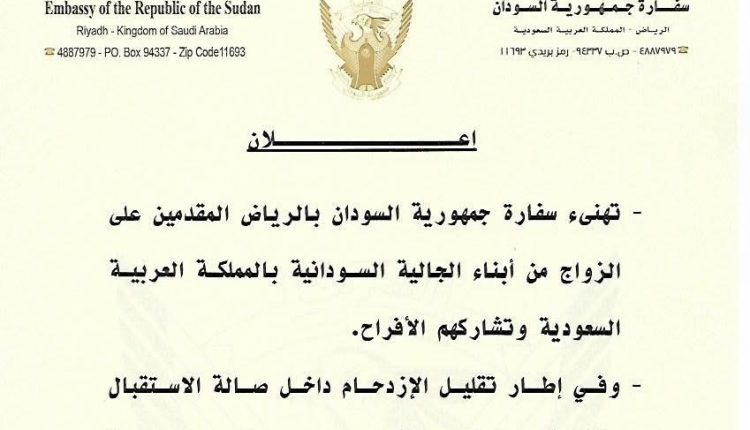 إعلان جديد من سفارة السودان بالرياض للمقبلين على الزواج