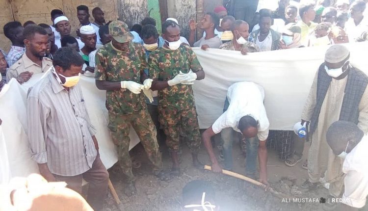 وباشرت الاتيام اعمال النبش عقب الترتيبات والتحضيرات الفنية والقانونية اللازمة بجانب الاستعانة بمختصين وذلك بحضور الاجهزة الرسمية من الاجهزة التنفيذية واللجنة الأمنية والقوات المسلحة والشباب المبادرين المتطوعين في مبادرة إكرام الموتى.