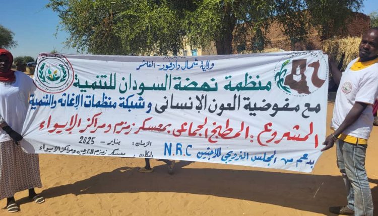 حيث انطلقت اولى اعمال المطابخ بمركز السلام 43 للنازحين الذي يأوي مواطنين من مدينة الفاشر والمعسكرات الفارين من الحرب وقال الهادي اسماعيل مدير منظمة نهضة السودان في تصريح صحفي ان المشروع يستهدف اطعام اكثر من خمس الف اسرة موزعين على عدد من مراكز الايواء واوضح ان اليوم الاول استهدف عدد 273 اسرة بمركز السلام 43 من النساء والاطفال وكبار السن ويضيف مدير منظمة نهضة السودان ان المشروع جاء بدعم من المجلس النرويجي للاجئين بتنسيق محكم مع مفوضية العون الانساني بالولاية وشبكة منظمات الاغاثة والتنمية في اطار جهودها في الوقوف من النازحين والفارين من الحرب وتوفير المساعدات الانسانية لهم .