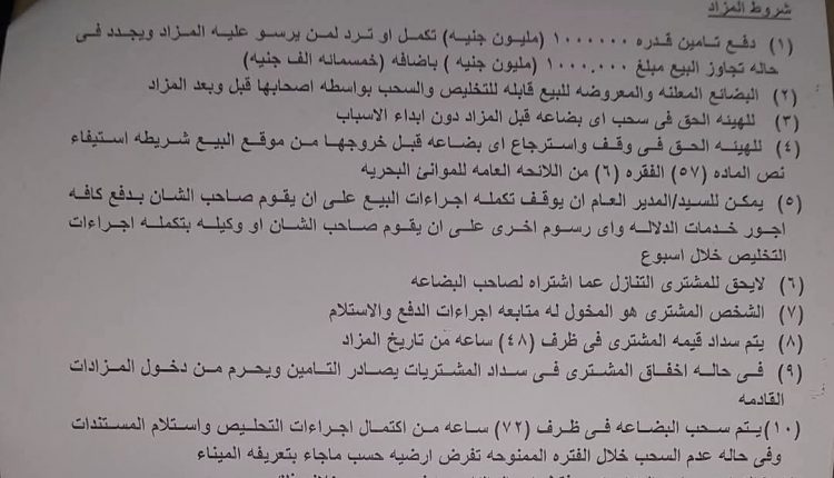 وسيتم عرض بضائع معبأة في حاويات بميناء سلوم خلال أيام 2- 3-4-و5 من شهر فبراير 2025