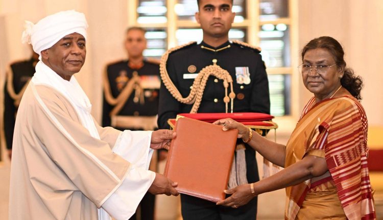 قدم السفير د.محمد عبدالله على التوم اليوم أوراق اعتماده لفخامة رئيسة الهند دروبادي مورمو سفيراً فوق العادة للسودان ومفوضاً لدى جمهورية الهند، بالقصر الرئاسي بنيودلهي