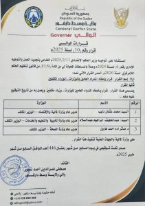 قرار بإعفاء 3 من وزراء حكومة وسط دارفور