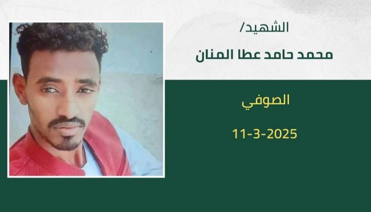 ارتقى شهيداً داخل منزله بمدينة “الصوفي” الشاب (محمد حامد عطا المنان) وذلك اثر تعدي قوات المليشيا المتواجدة بالمنطقة عليه.