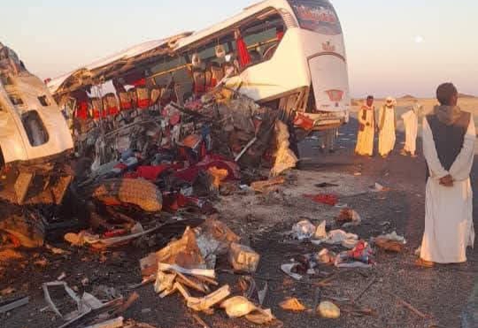 ادى حادث مرورى وقع اليوم بطريق المرور السريع الشمالية بين بص سفرى وعربة قلاب zsادى الى وفاة ١٩ شخص وإصابة ٨ آخرين